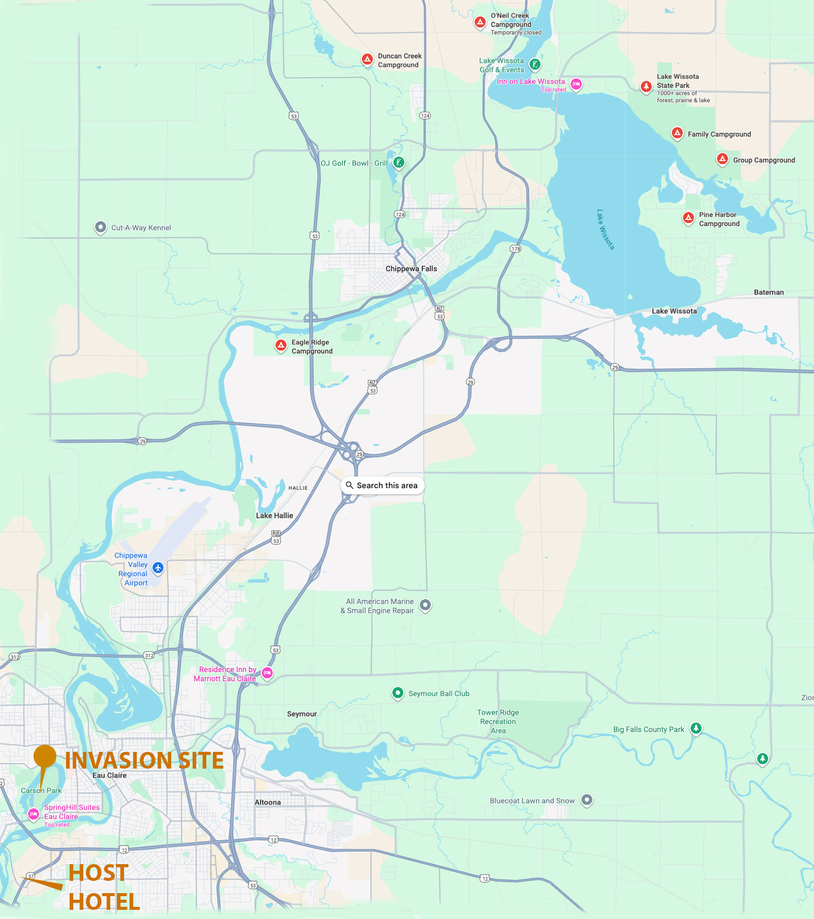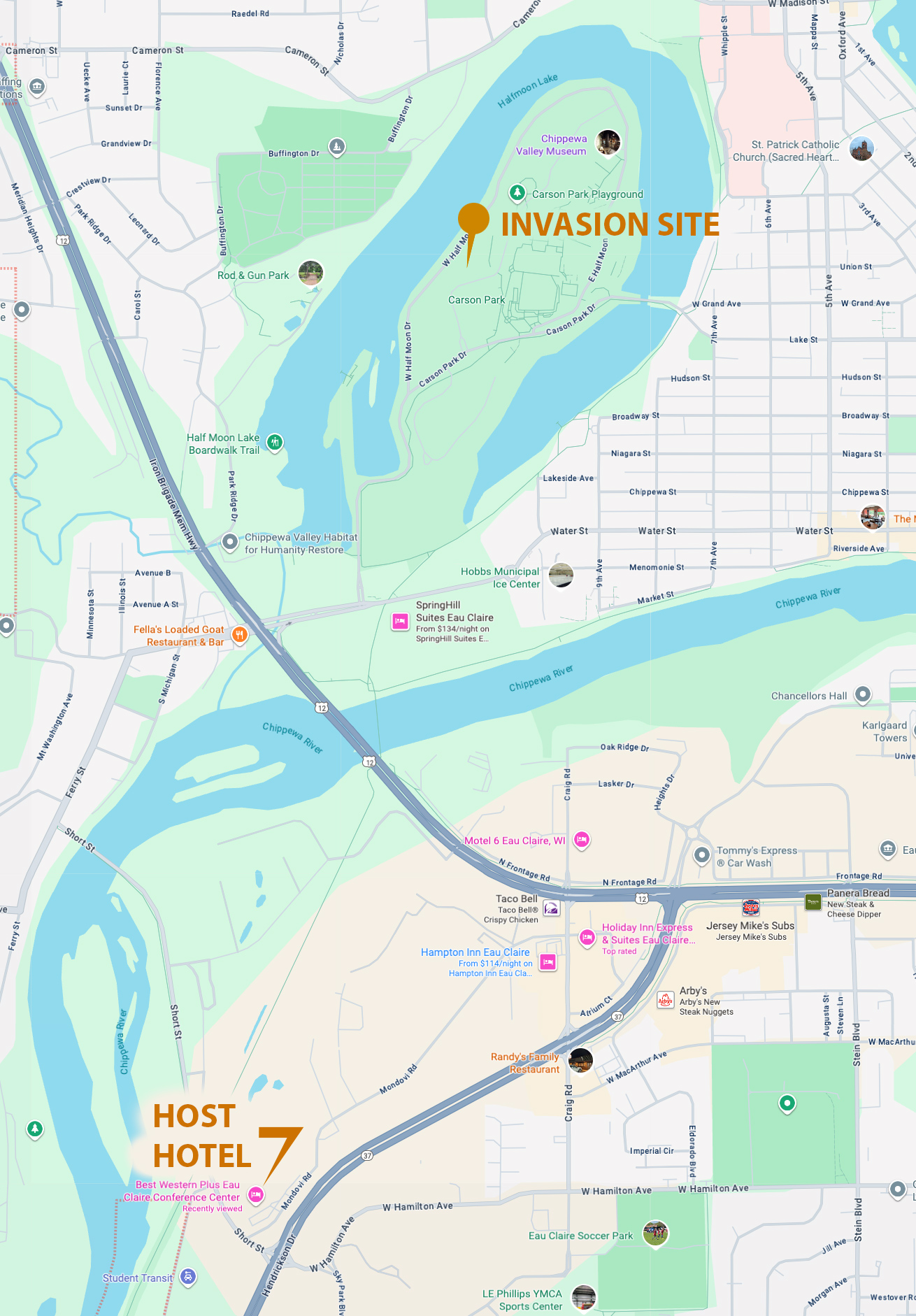 The Best Western Plus & Conference Center is just 2.5 miles (a 7 minute drive) from the site of the Invasion in Carson Park.